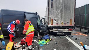 U hromadné nehody na 215. km D1 směr Brno zasahují jednotky ze tří stanic. Další nehoda je na 221. km ve stejném směru. Dálnice je neprůjezdná.