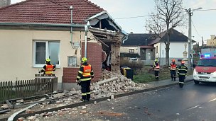 Do rodinného domu v Benešově na Blanensku narazil autobus, hasiči museli dům stabilizovat